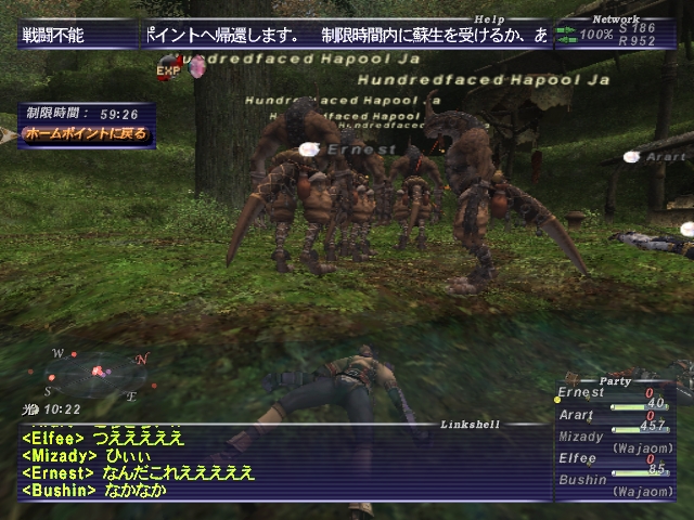 掃除のためにその辺の敵を手当たり次第釣っていたんですが、釣ったモンスが実はNM!その名も「Hundredfaced Hapool Ja」!