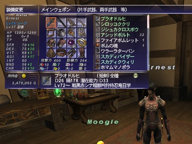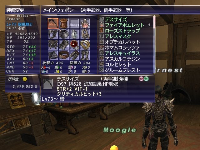 武器はオグメSTR+2 VIT-1 クリ+3付のデスサイNQ
